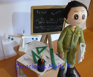 Fofucho Ingeniero aeronáutico personalizado con maqueta de avión y planos.